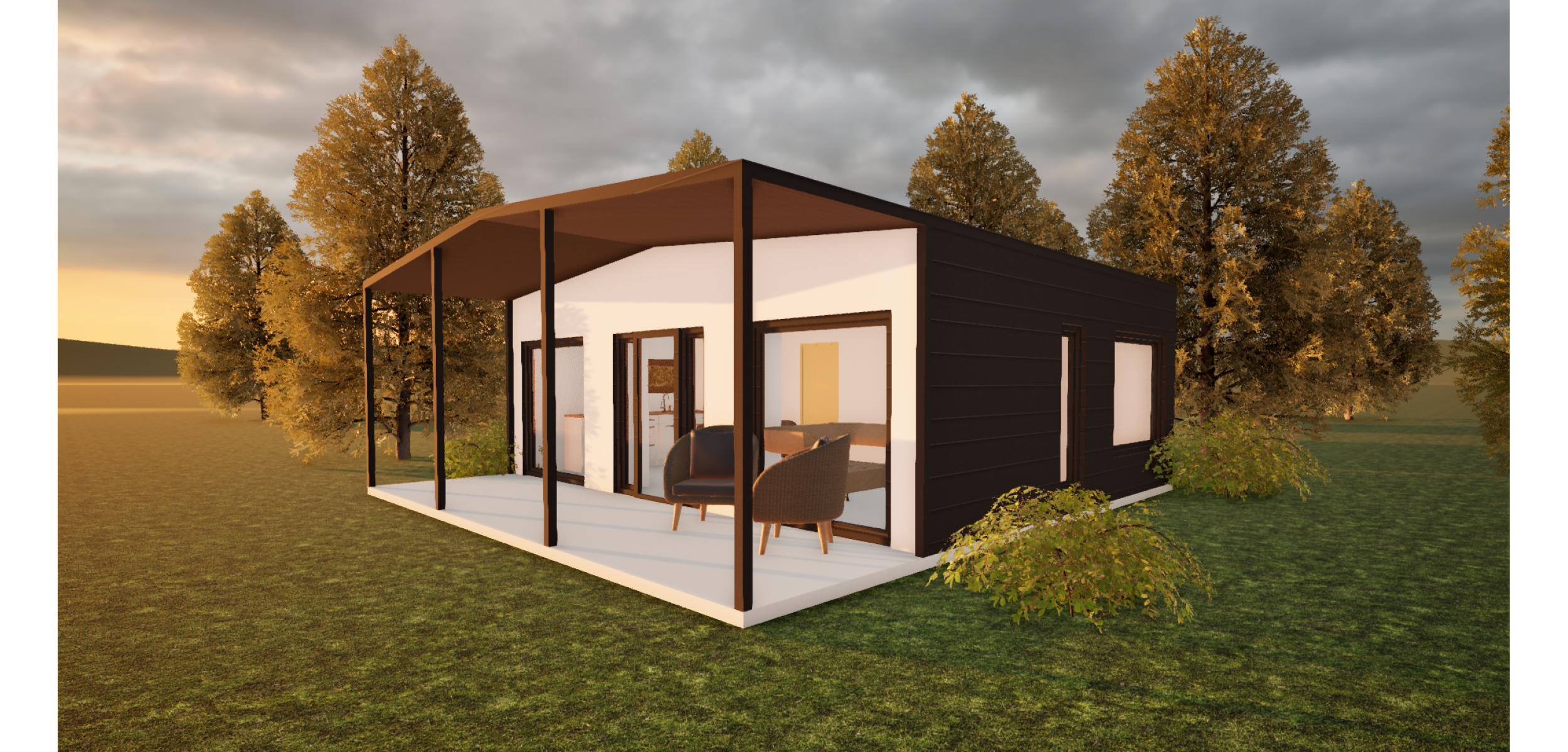 Модульный дом с панорамными окнами — стильный и уютный интерьер. Внутреннее пространство модульных домов с панорамными окнами выглядит светлым и просторным благодаря большим окнам. Интерьер модульных домов может быть оформлен в различных стилях, что позволяет создать уютную атмосферу.